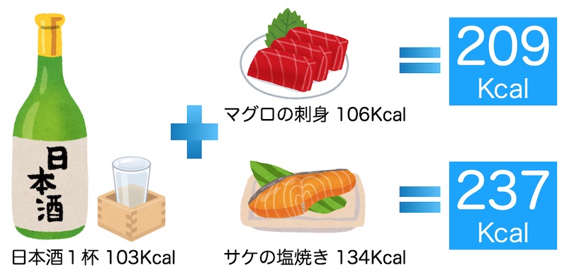 日本酒1杯とお刺身を食べてもカロリーは200Kcalを少し超える程度です。