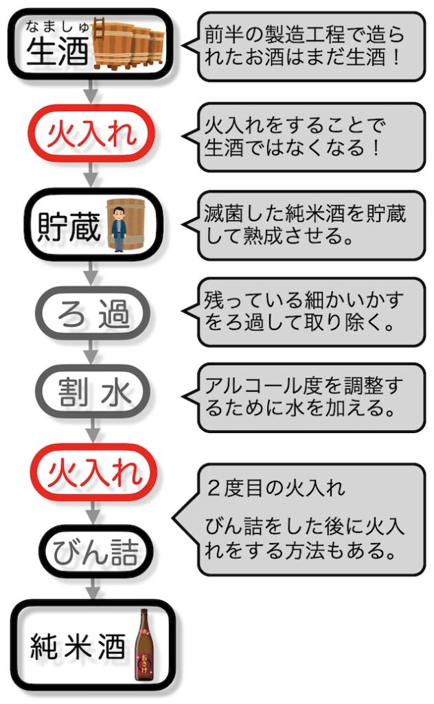 ・生貯蔵酒(なまちょぞうしゅ):火入れは貯蔵後に1回だけする