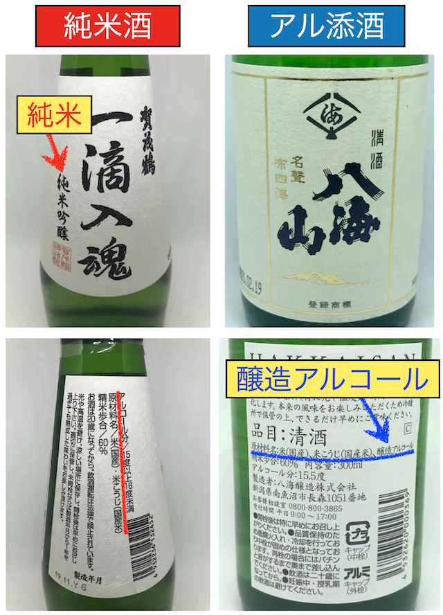 目の前に日本酒の瓶があれば、純米酒かアル添酒かわかります。