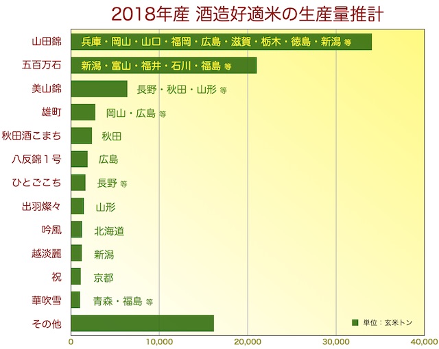 多種類の酒造好適米を生産している所が酒処(さけどころ)といえそうです。