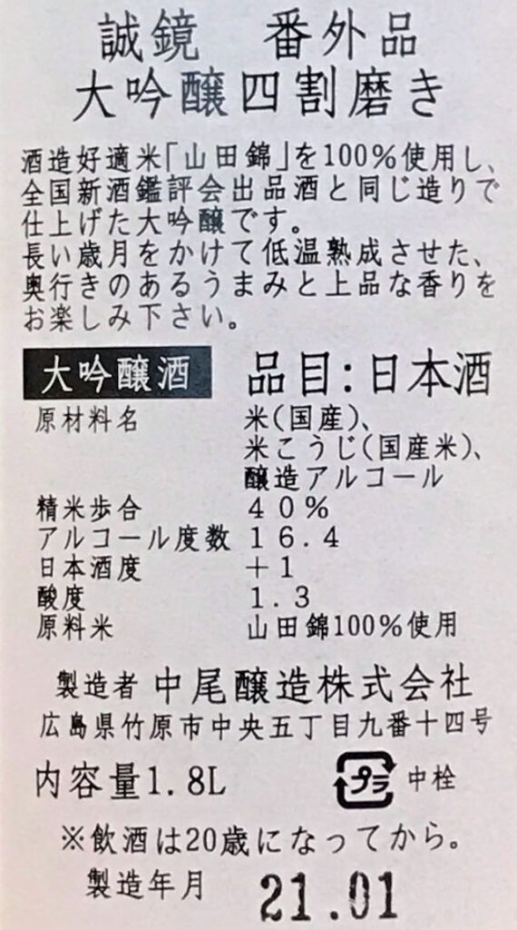 レビュー【純米大吟醸酒】誠鏡 四割磨き[広島県]飲んでみた!