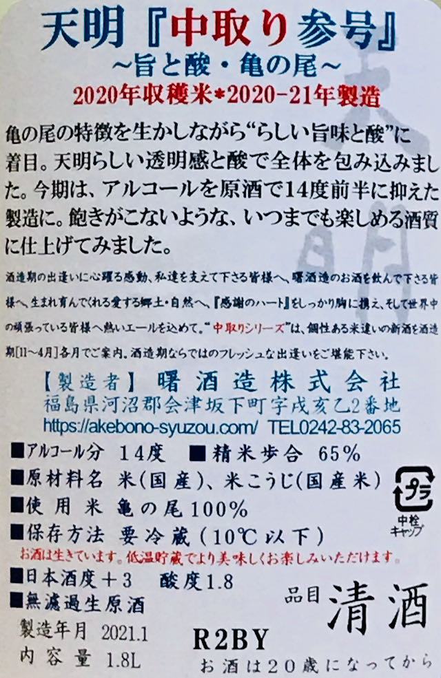 レビュー【純米酒】天明 中取り参号[福島県]飲んでみた!