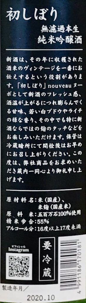 地元農家契約栽培の五百万石を55%まで磨き上げて吟醸造りをした純米吟醸酒です。