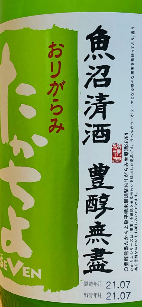 レビュー【純米酒】たかちよ SEVEN おりがらみ本生 扁平精米 緑ラベル[新潟県]飲んでみた!