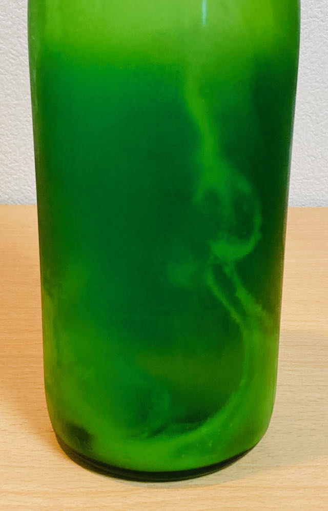 滓(おり)を撮影しました。一升瓶を横に倒した後の様子を見てください。