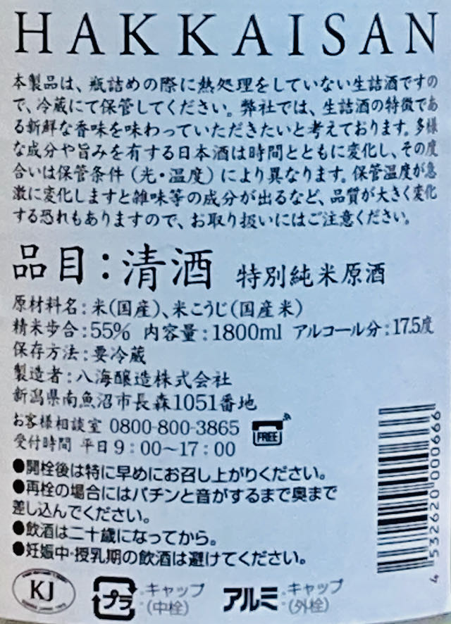 酒蔵:八海醸造[新潟県] 購入価格:3,380円(税込/1800ml)[2021年6月]