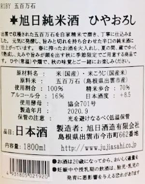 【特別純米酒】旭日 ひやおろし[島根県]飲んでみた!