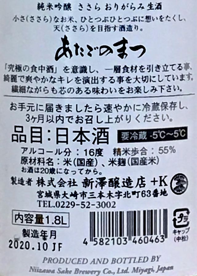 レビュー【純米吟醸酒】あたごのまつ[宮城県]飲んでみた!