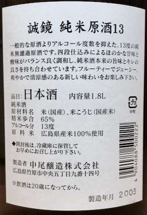 レビュー【純米酒】誠鏡13[広島県]飲んでみた!