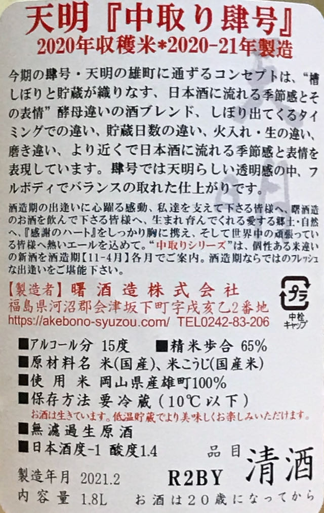 レビュー【純米酒】天明 中取り肆号[福島県]飲んでみた!
