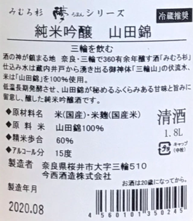 仕込み水は蔵内井戸から湧き出る御神体「三輪山」の伏流水、米は「山田錦」を100%使用。