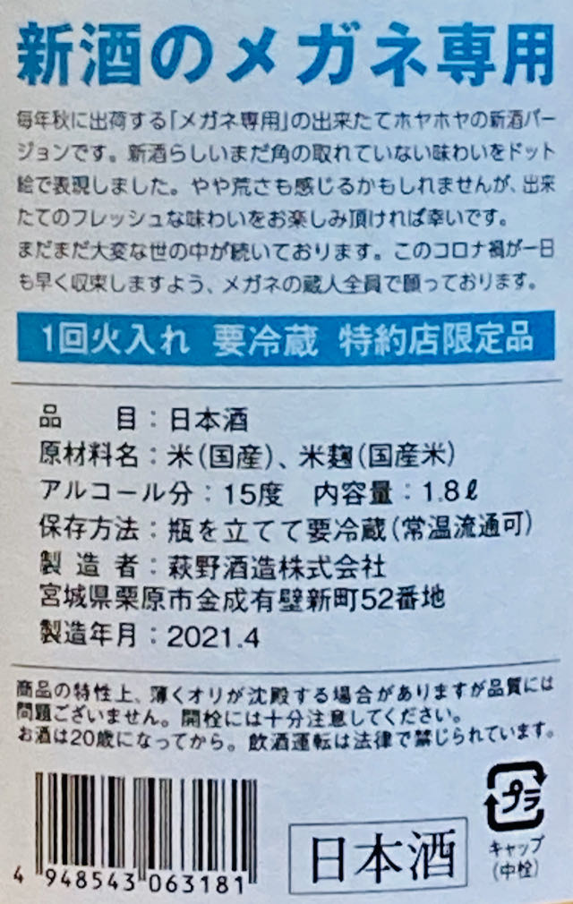 毎年秋に出荷される「メガネ専用」という名称の日本酒がありますが、その新酒バージョンです。