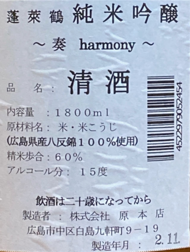 レビュー【純米吟醸酒】蓮菜鶴 奏 harmony[広島県]飲んでみた!